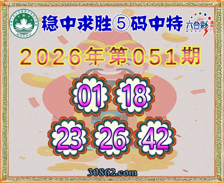 051期:【稳中求胜】 ⑤码中特01.18.23.26.42】开:01