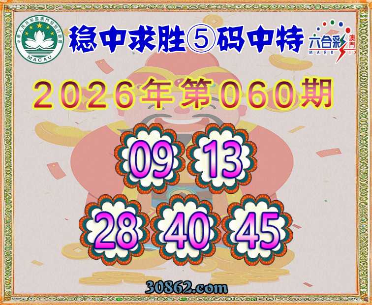 060期:【稳中求胜】 ⑤码中特09.13.28.40.45】开:09