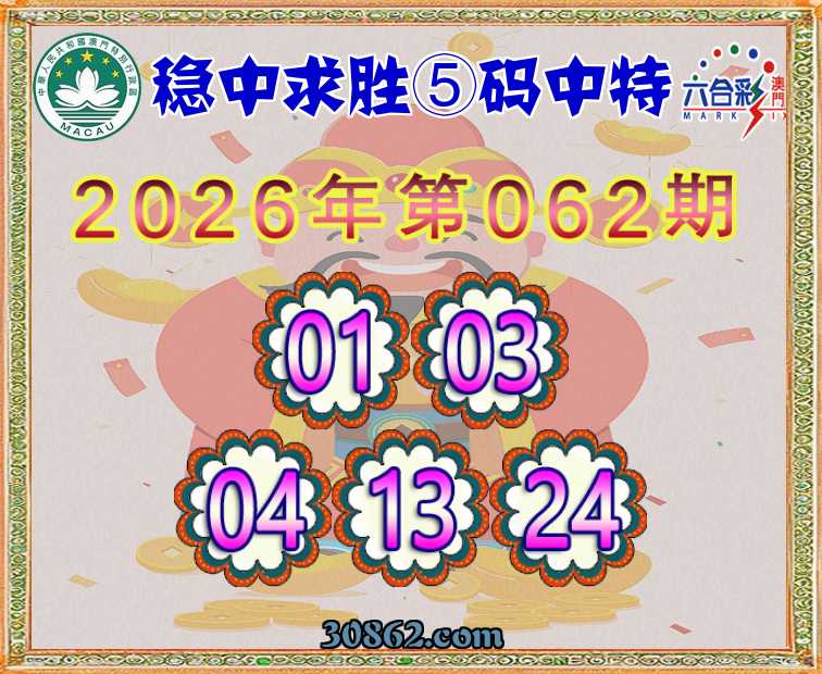 062期:【稳中求胜】 ⑤码中特【01.03.04.13.24】开:24