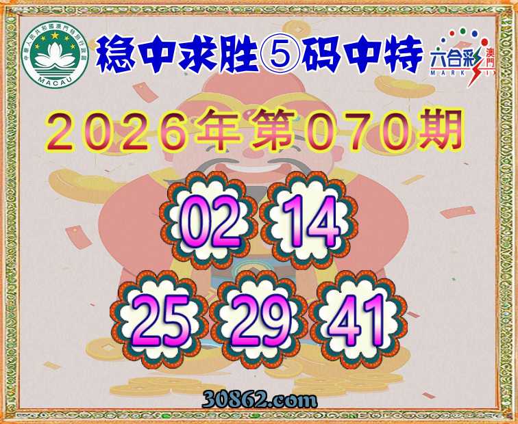 070期:【稳中求胜】 ⑤码中特【02.14.25.29.41】开:25